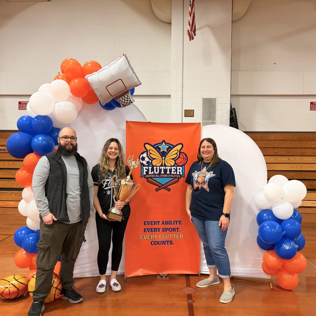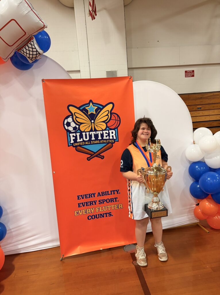 Our Flutter Friends program pairs Flutter athletes with dedicated volunteers who provide encouragement, guidance, and an extra layer of support both on and off the field. Whether it’s during practice or game day, Flutter Friends are there to help each athlete feel confident, included, and celebrated. By stepping in where needed and cheering from the sidelines, they help every athlete’s individual strengths shine — reminding us all that teamwork and inclusion make every flutter count.